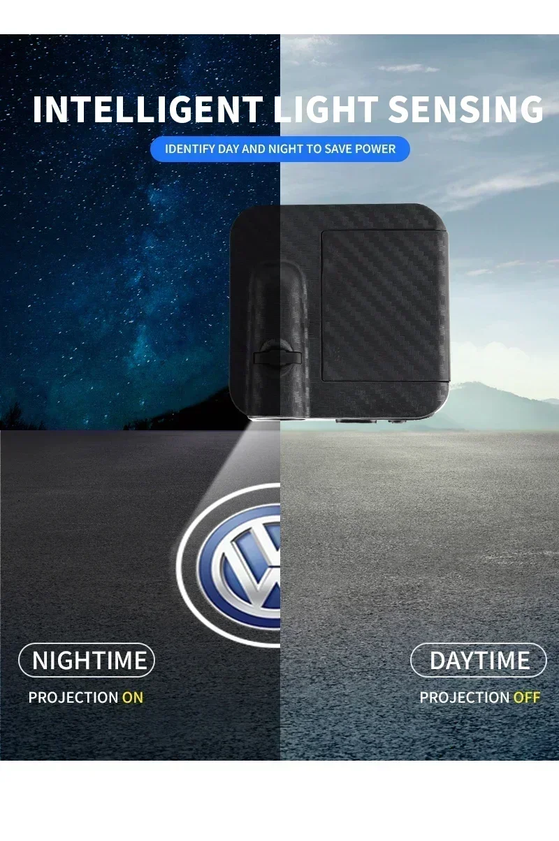 6.The car logo light will display on the ground when you open the car door ,it will turn off when you close the door.